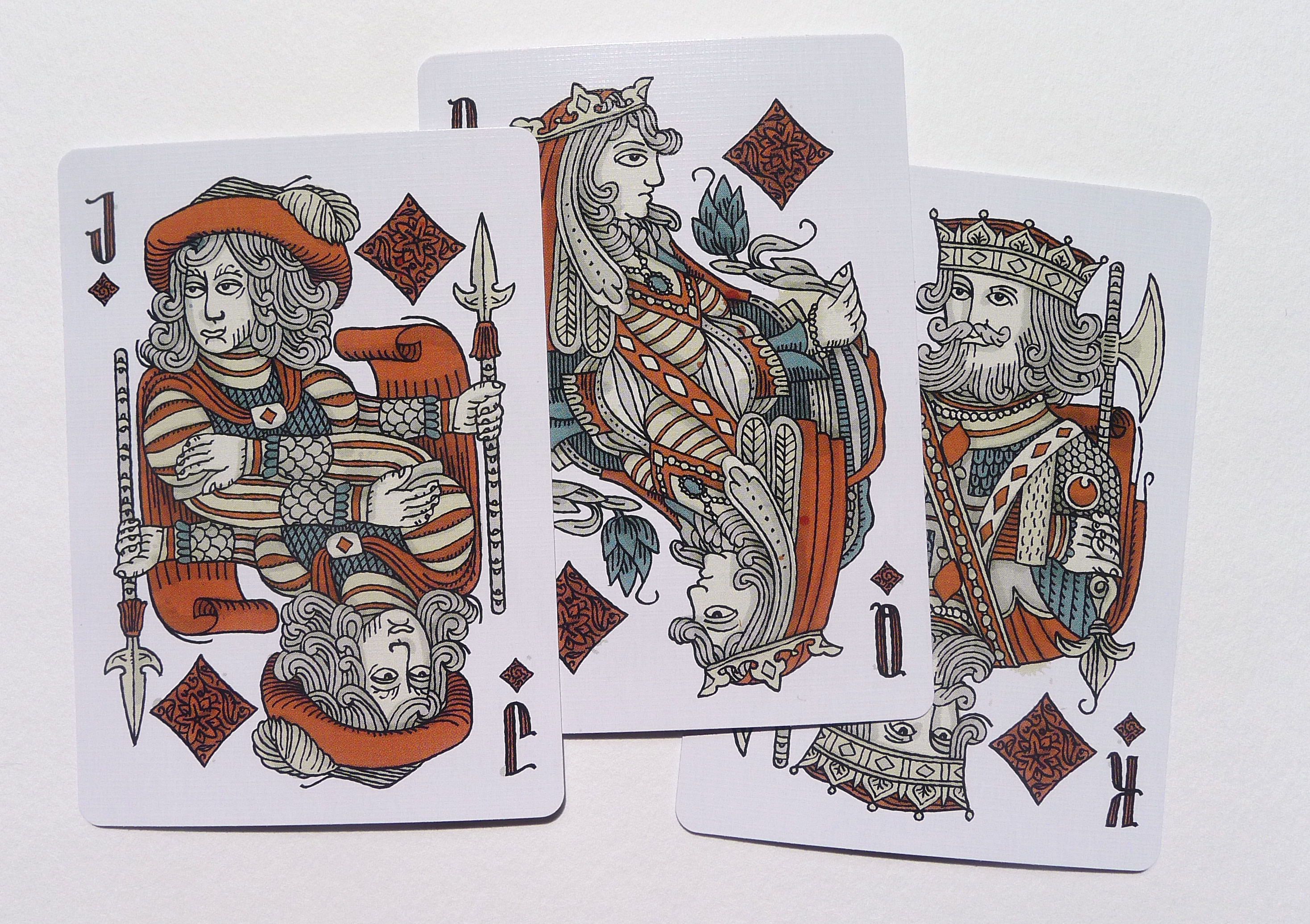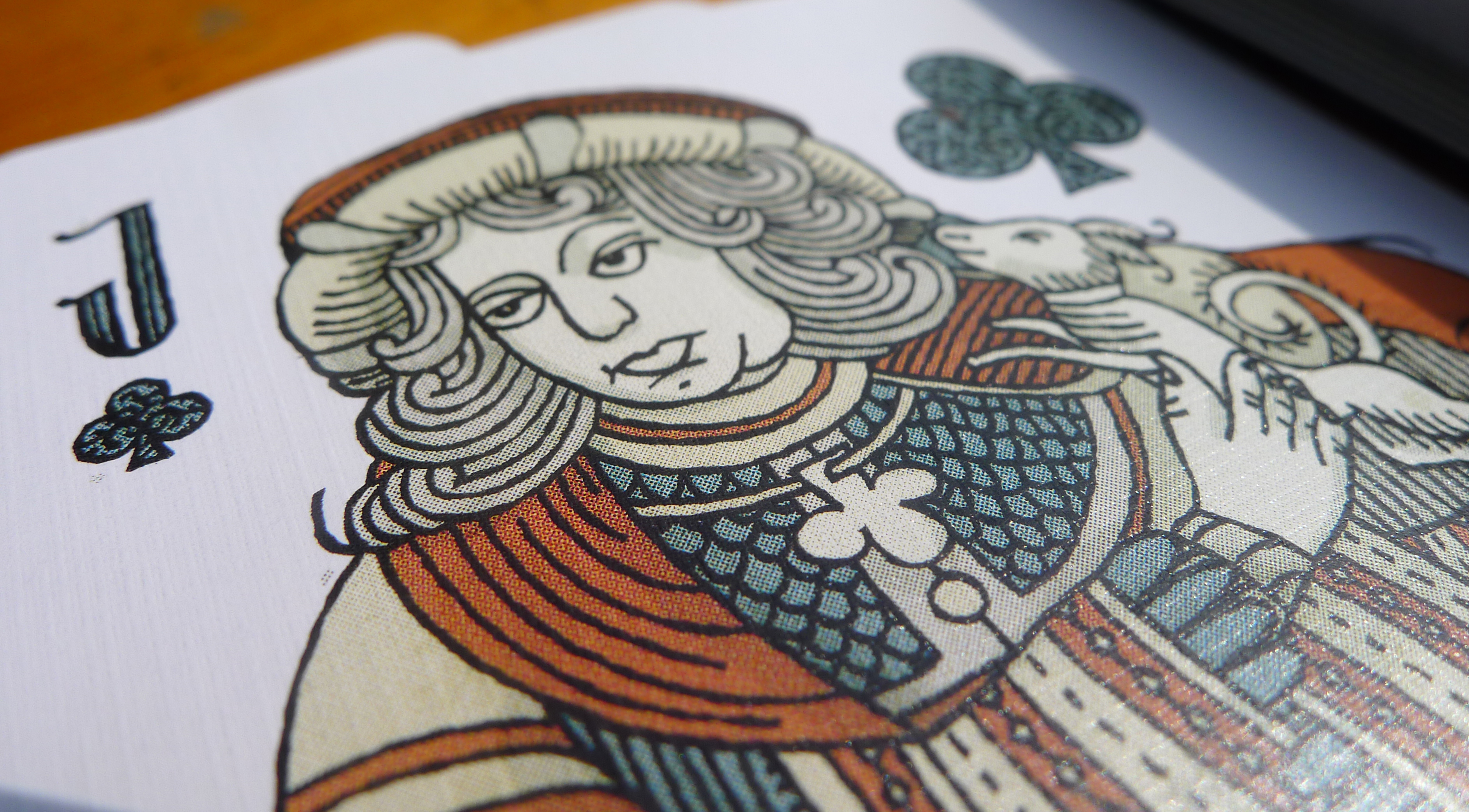 The art is inspired by some of the really old playing card designs — and also life on Moon.